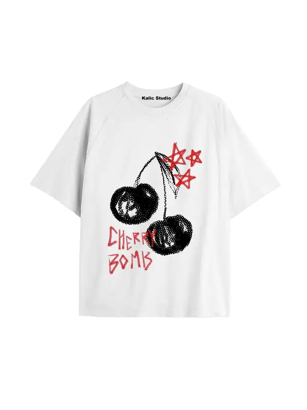Y2k vintage Cherry Baskılı Sİyah T-shirt KOD 52