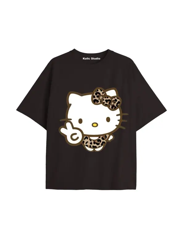 Y2k vintage Leopar Baskılı Sİyah T-shirt KOD 107