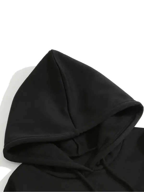 Letter Graphic Kangaroo Pocket Drawstring Lined Hoodie Siyah