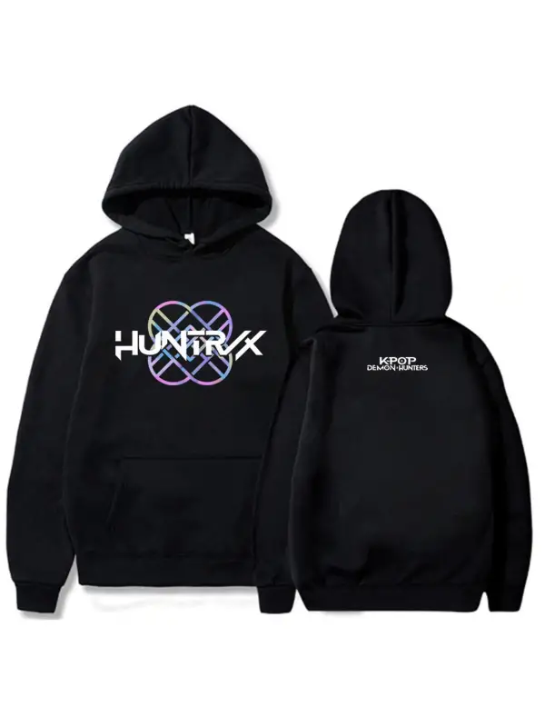 Siyah KPop Demon Hunters Huntrix Logosu Hoodie Film, Kaza