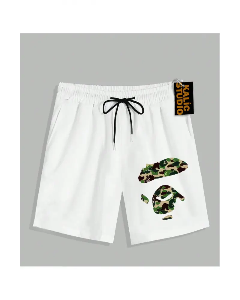 UNİSEX Bay Bape Desenli Beyaz Yazlık ŞORT