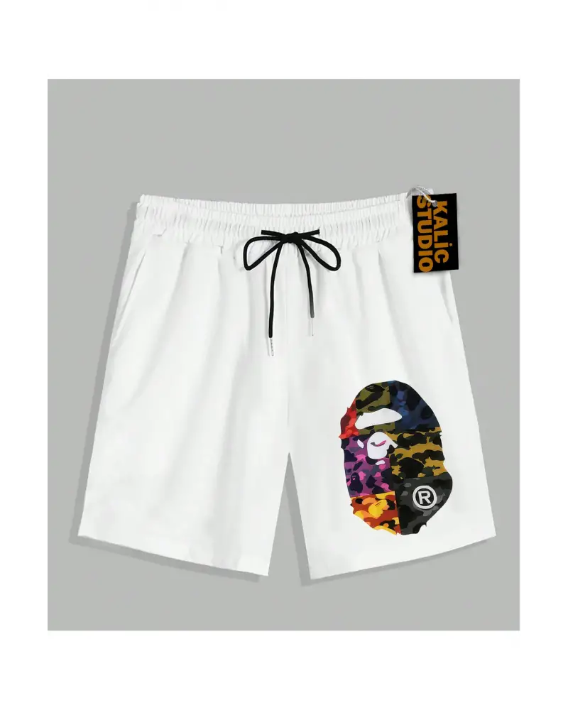 UNİSEX Bay Bape Desenli Beyaz Yazlık ŞORT
