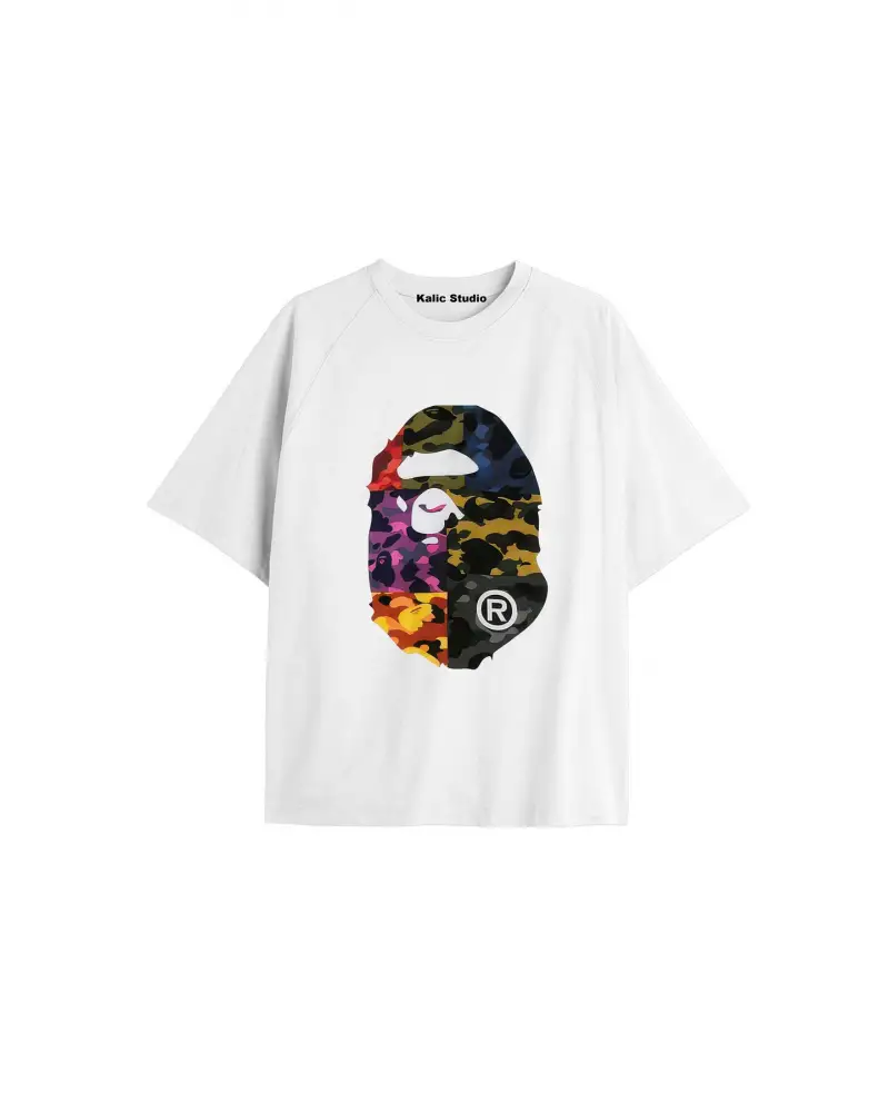 UNİSEX Bay Bape Desenli Beyaz Yazlık T-shirt