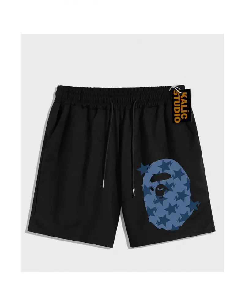 UNİSEX Bay Bape Desenli Siyah Yazlık ŞORT