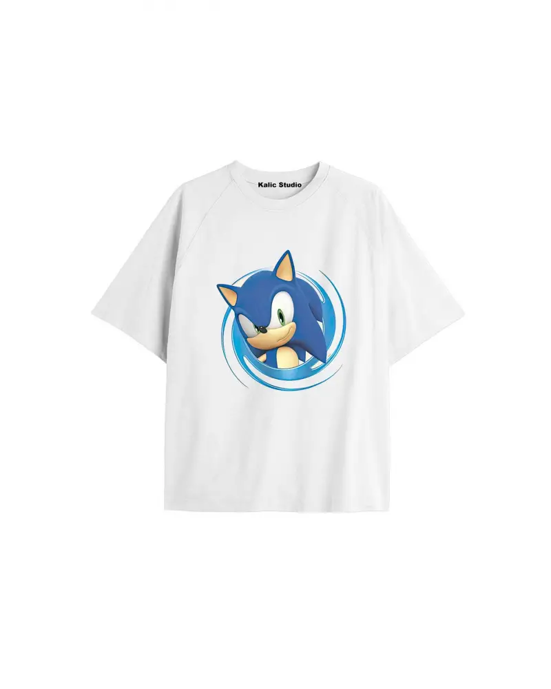 UNİSEX Bay Sonic Desenli Beyaz Yazlık T-shirt