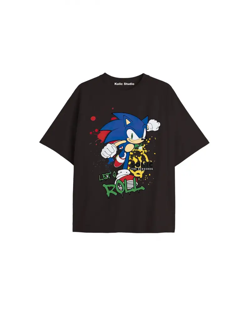 UNİSEX Bay Sonic Desenli Siyah Yazlık T-shirt