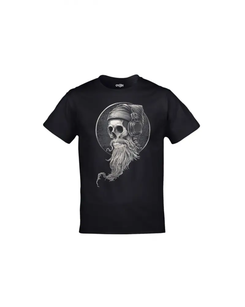 Unisex Siyah Hipster Skull Sakallı Kurukafa Baskılı