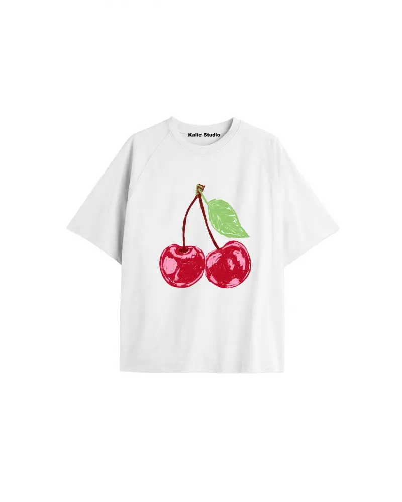 Kadın Oversize Olives and Wine Tshirt Beyaz
