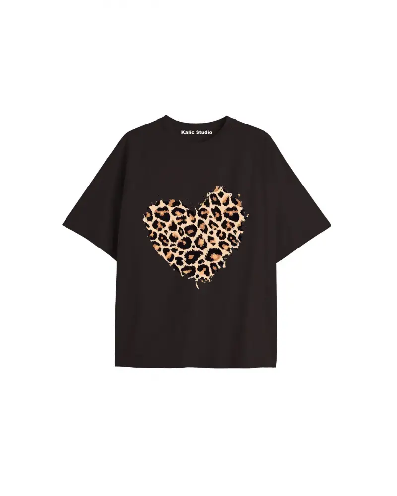 Y2k vintage Leopar Baskılı Sİyah T-shirt KOD 146