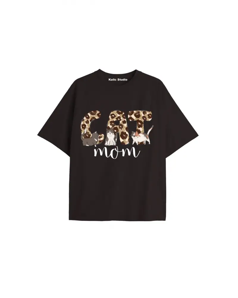 Beyaz Oversize T-shirt happy kedi Özel tasarım