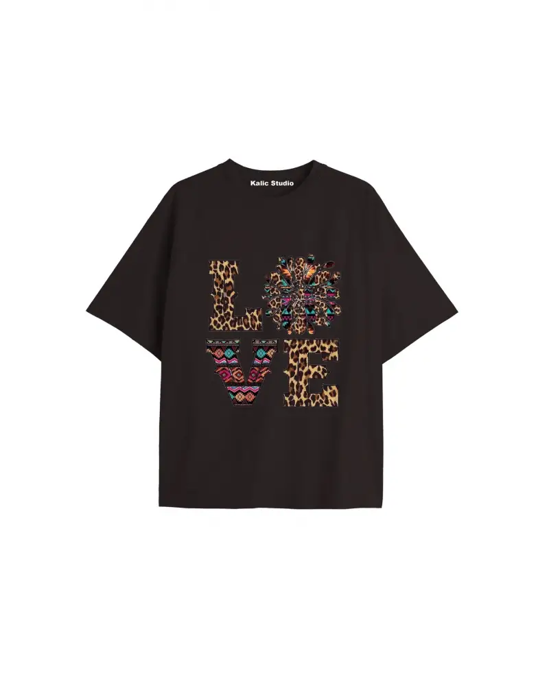 Y2k vintage Leopar Baskılı Sİyah T-shirt KOD 157