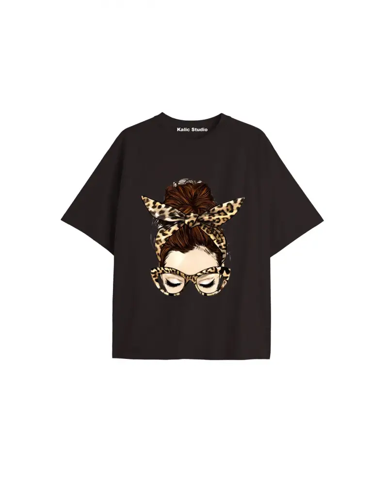 Y2k vintage Leopar Baskılı Sİyah T-shirt KOD 175
