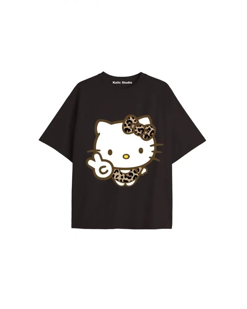 Y2k vintage Leopar Baskılı Sİyah T-shirt KOD 181