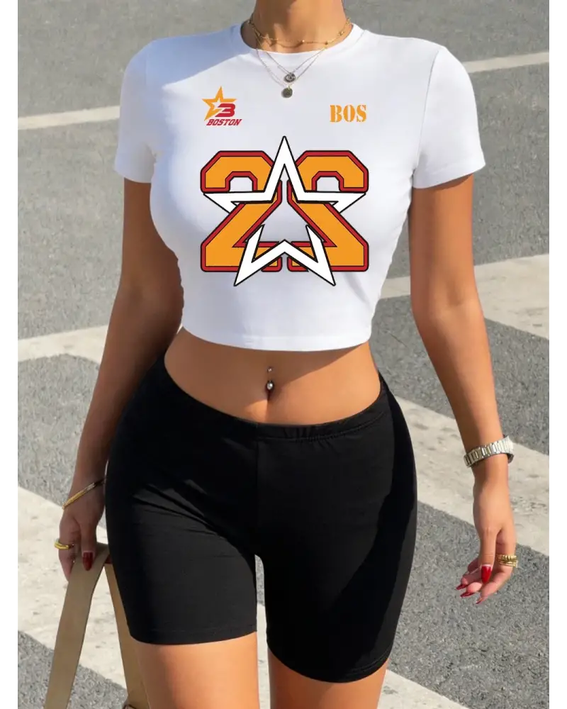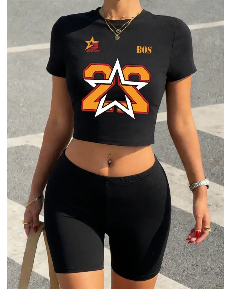 Yaz Boston Numarası 22 Yıldız Baskılı Kırpma T-Shirt Şort Kadın Seksi İki Parçalı Set Üstleri kaliteli malzeme ve konforlu kullanım sunan bir üründür. Günlük kullanım için ideal olup uygun fiyat ve hızlı kargo avantajıyla sunulmaktadır.