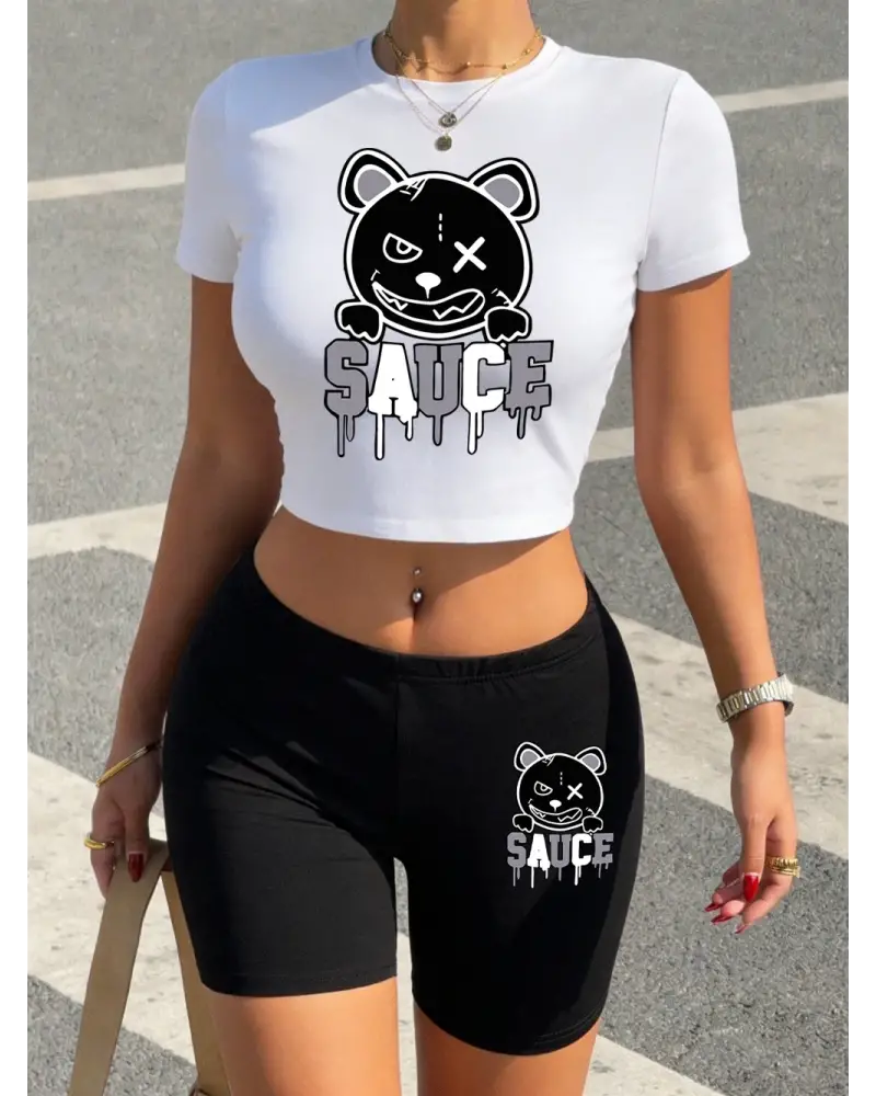 Yazlık Eriyen Karikatür Ayı Baskılı Babby TeeTişört Şort Kadın İki Parçalı Takım Üst Pantolon Dar kaliteli malzeme ve konforlu kullanım sunan bir üründür. Günlük kullanım için ideal olup uygun fiyat ve hızlı kargo avantajıyla sunulmaktadır.