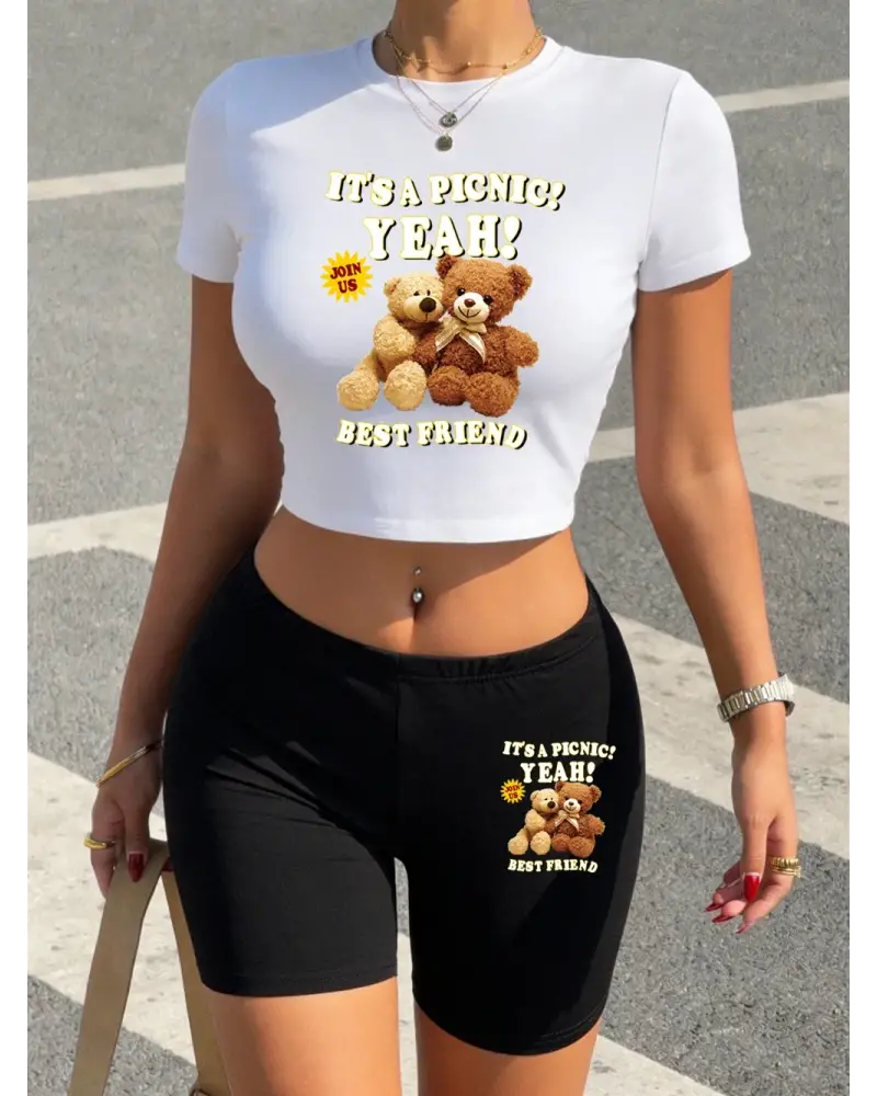 Yazlık Sevimli Ayı Karikatür Baskılı Babby Teelar Şortlar Kadın Seksi İki Parçalı Set Tişört P kaliteli malzeme ve konforlu kullanım sunan bir üründür. Günlük kullanım için ideal olup uygun fiyat ve hızlı kargo avantajıyla sunulmaktadır.