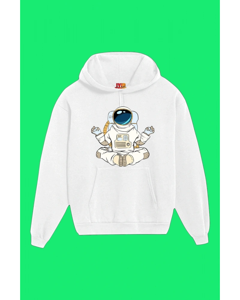 IvırZıvır----Unisex Beyaz Astronot Baskılı Sweatshirt