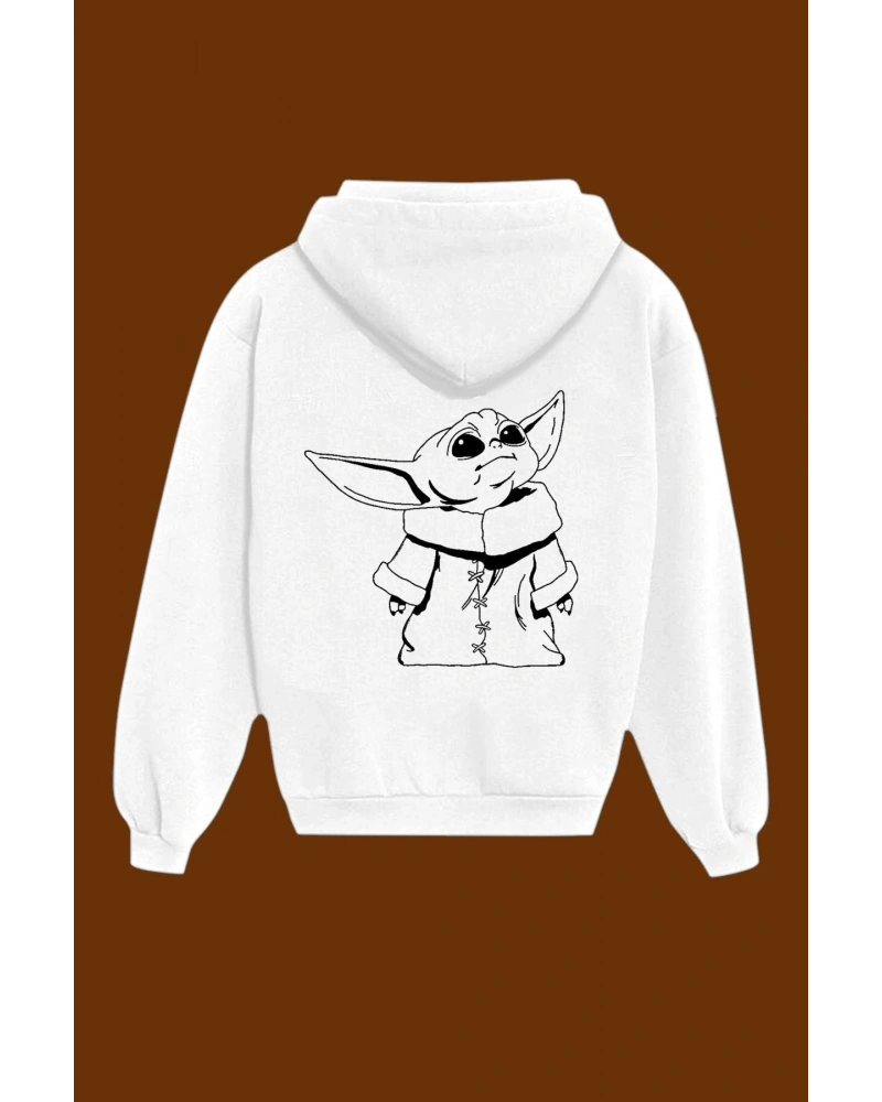 IvırZıvır----Unisex Beyaz Baby Yoda Sırt Baskılı Sweatshirt