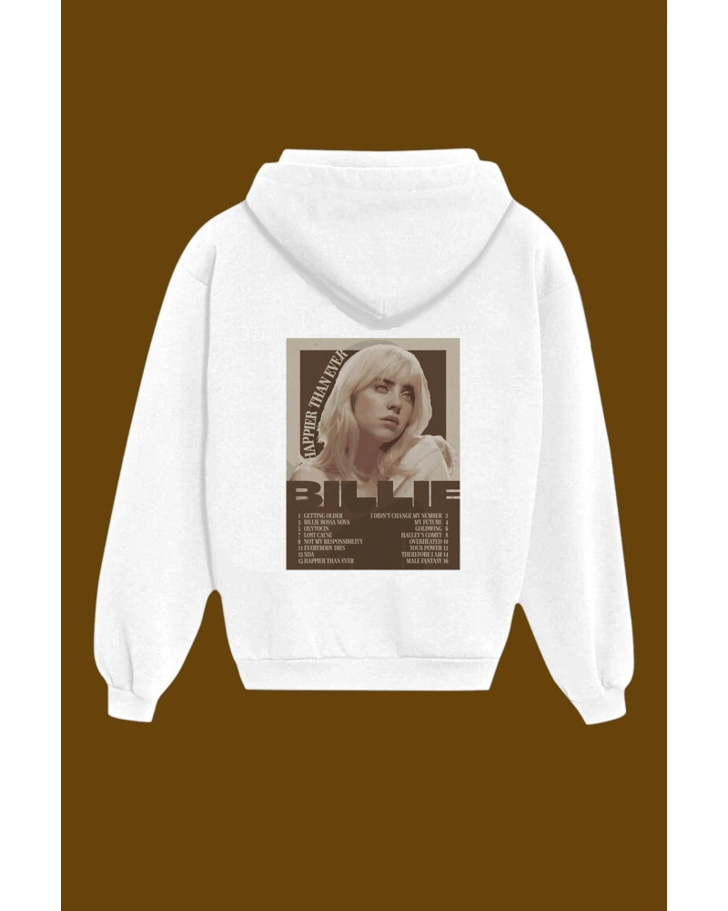 IvırZıvır----Unisex Beyaz Billie Eilish Sırt Baskılı Sweatshirt