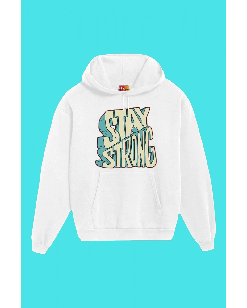 IvırZıvır----Unisex Beyaz Stay Strong Baskılı Sweatshirt
