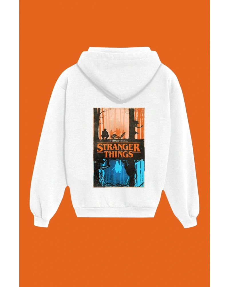 IvırZıvır----Unisex Beyaz Stranger Things Baskılı Sweatshirt