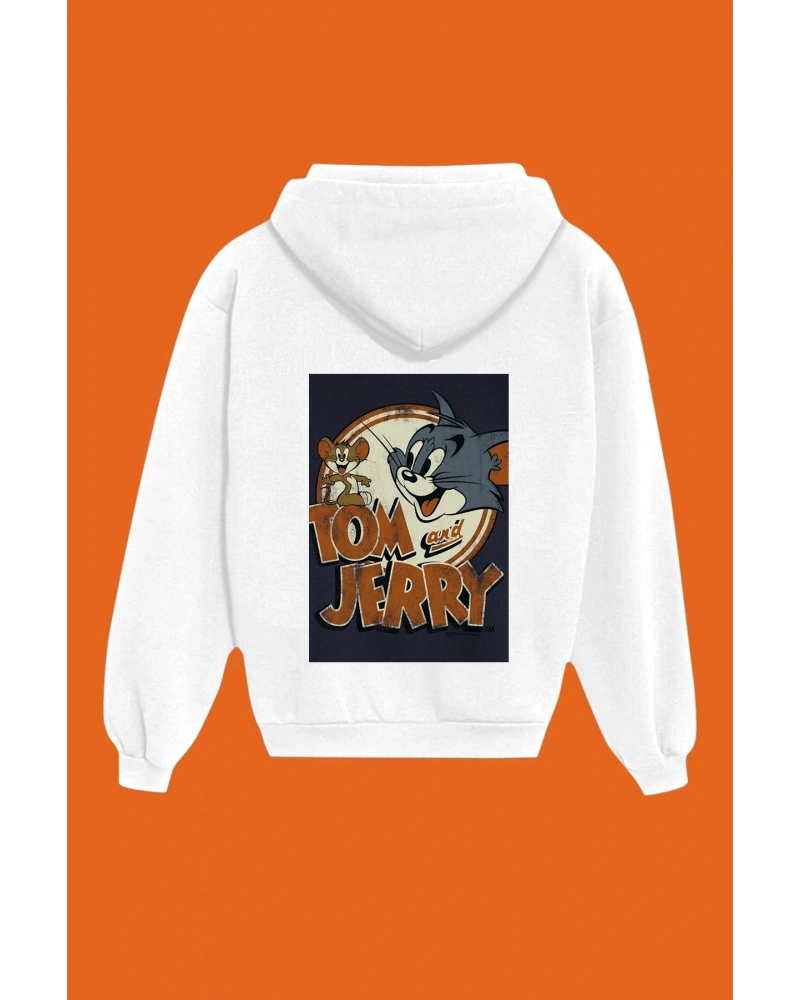 IvırZıvır----Unisex Beyaz Tom And Jerry Sırt Baskılı Sweatshirt