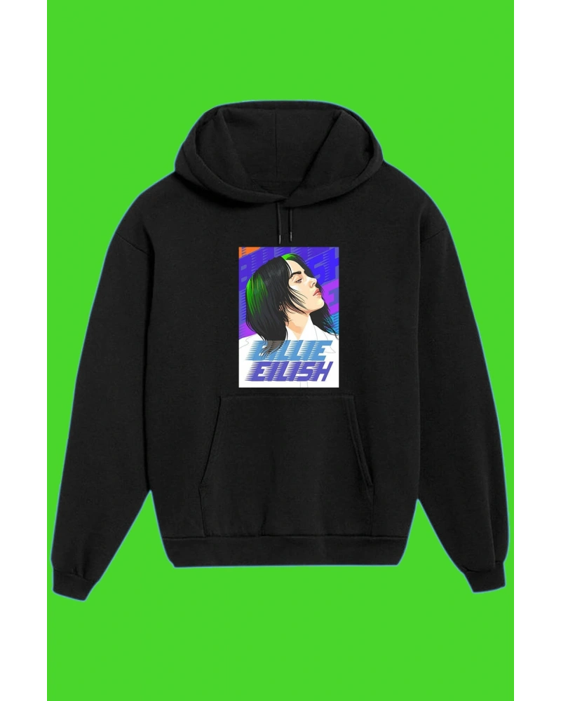 IvırZıvır----Unisex Siyah Billie Eilish Baskılı Sweatshirt