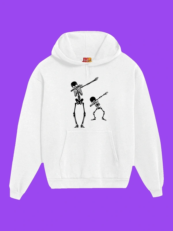 Unisex Beyaz Skull Sırt Baskılı Sweatshirt