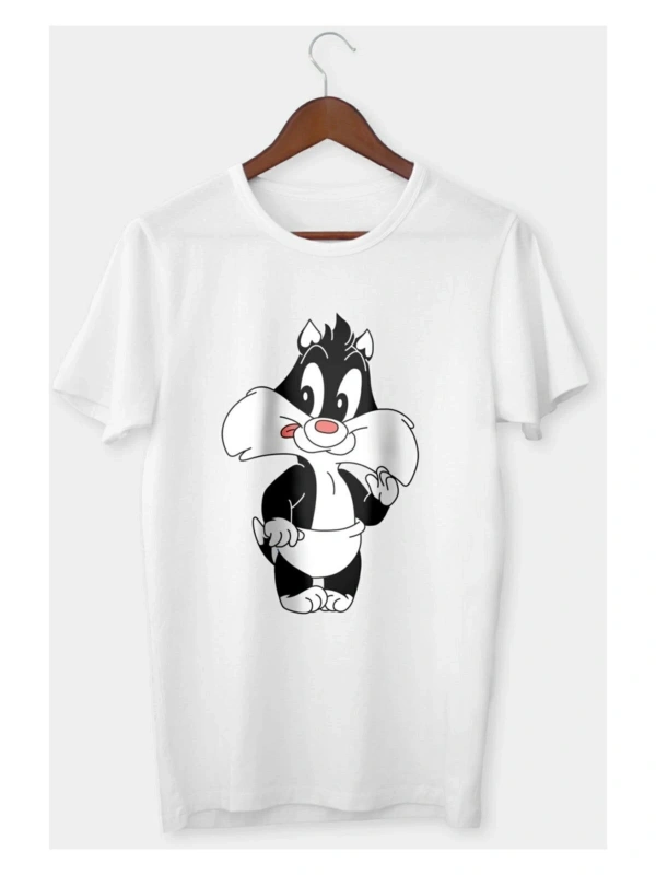 Unisex Beyaz Sylvester Baskılı T-shirt