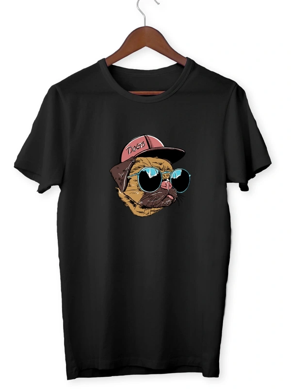Unisex Siyah Cool Dog Baskılı T-shirt