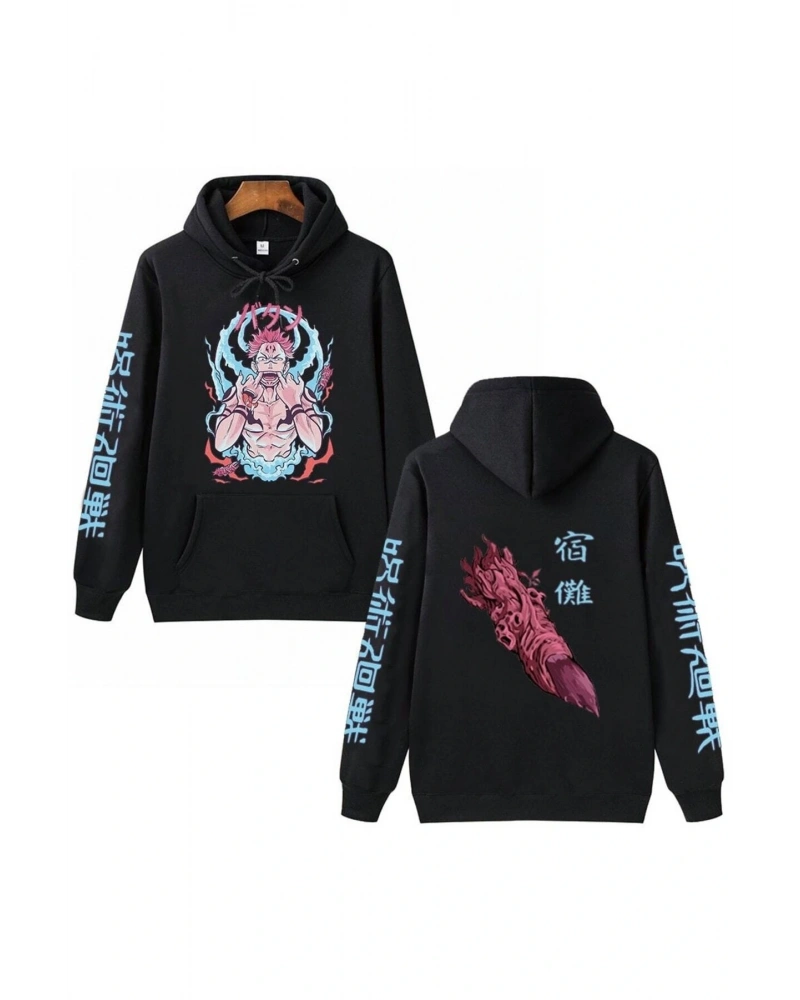 Jujutsu Kaisen Ryomen Sukuna Kapşonlu Hoodie 14589 Siyah