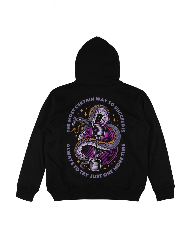 Just Try Siyah Oversize Unisex Kapüşonlu Sweatshirt Hoodie