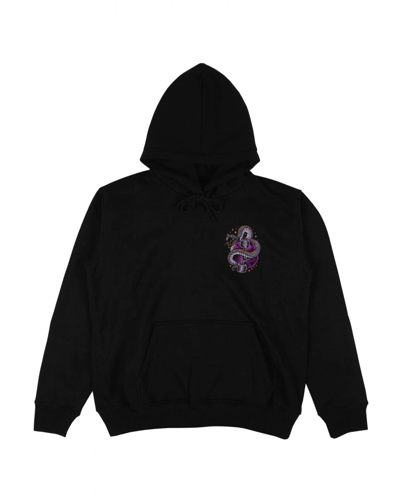 Oversize Unisex Siyah Yaşam Çiçeği Hoodie