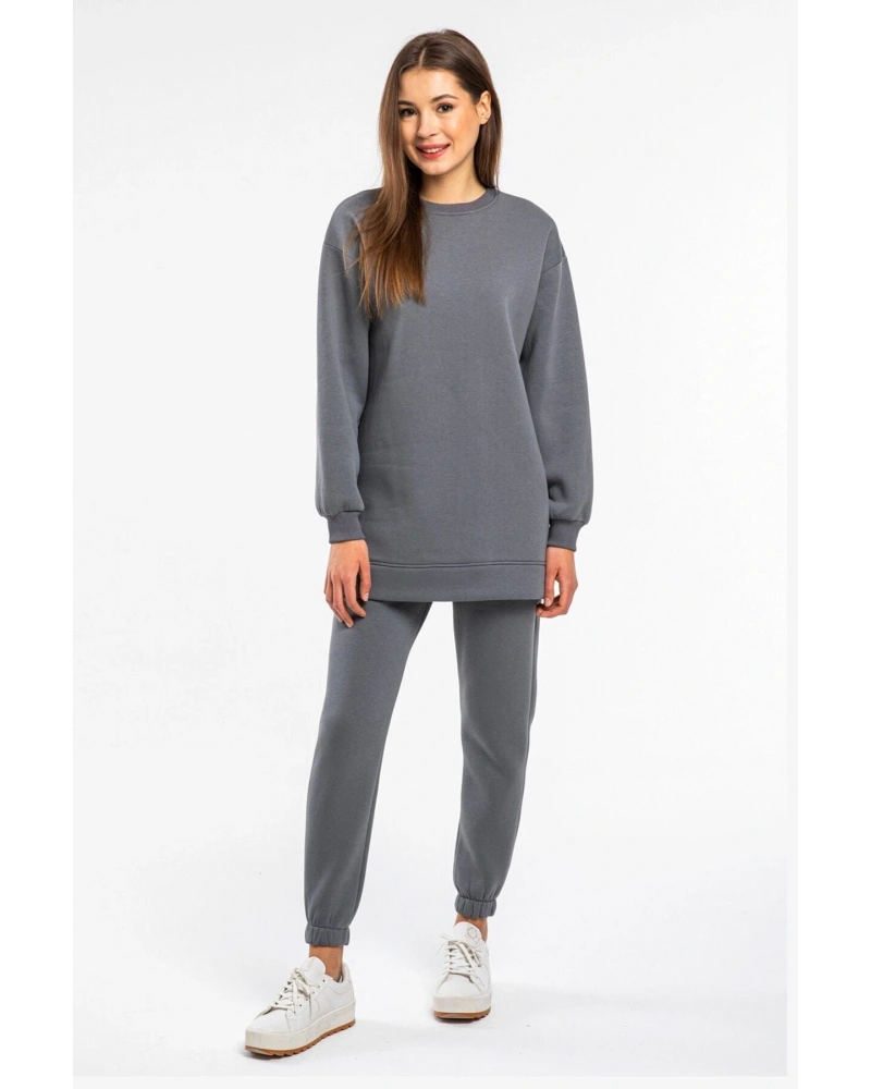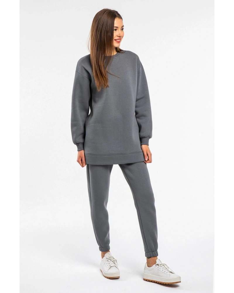 Kadın Antrasit Bisiklet Yaka 2 Iplik Polarlı Eşofman Takımı Cy84203