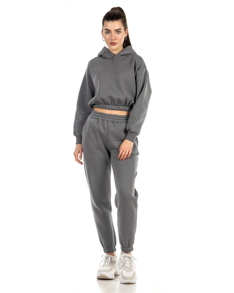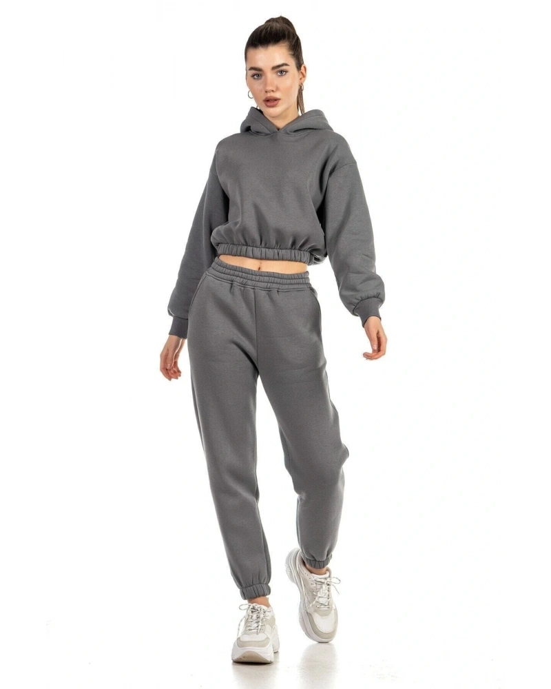 Kadın Antrasit Renkli Yüksek Bel Jogger Eşofman Takımı Cy84156