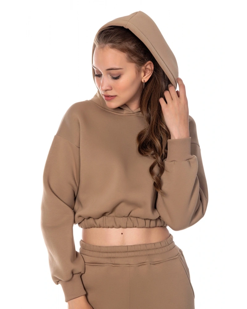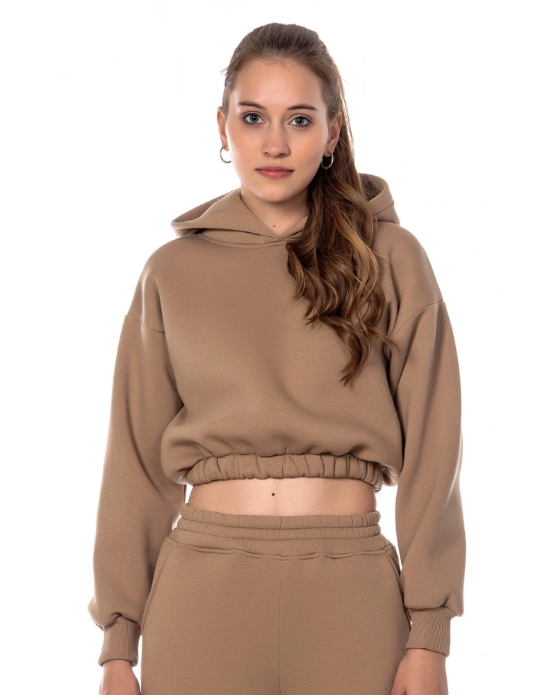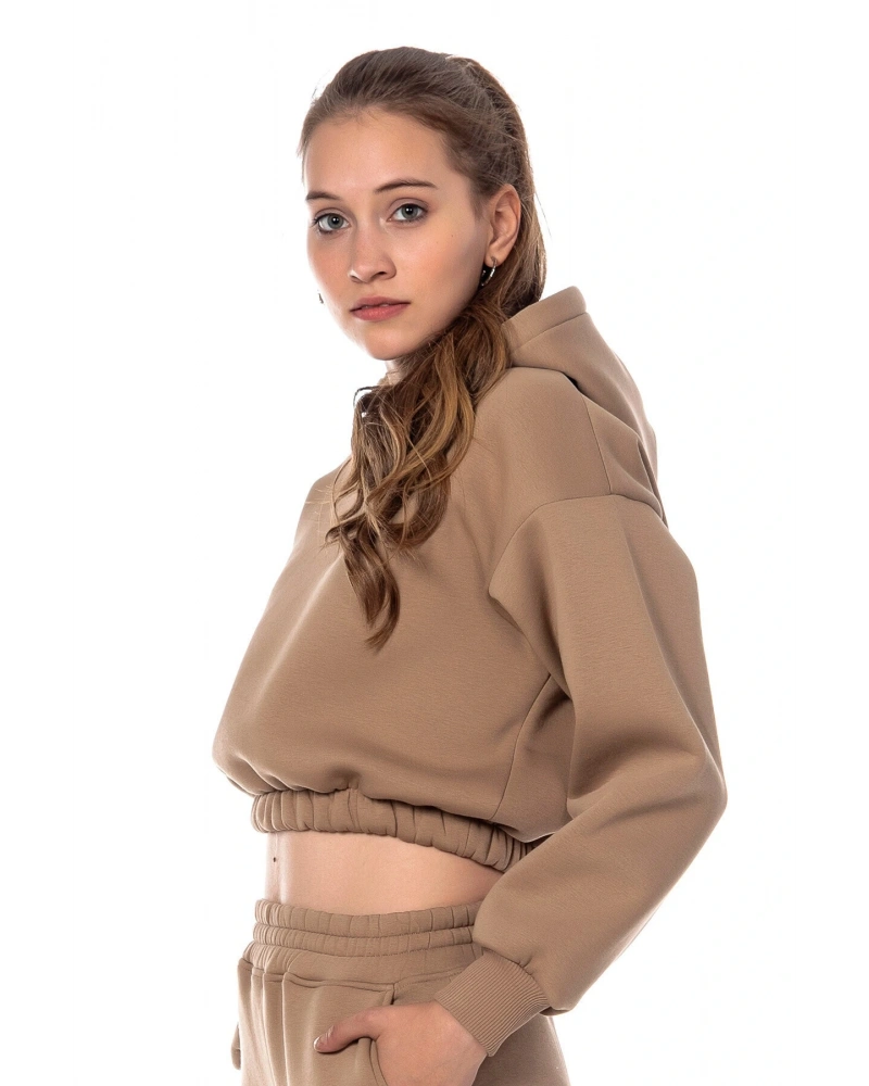 Kadın Bej Rengi Kapüşonlu Crop Kesim Sweatshirt Cy84196 Bej