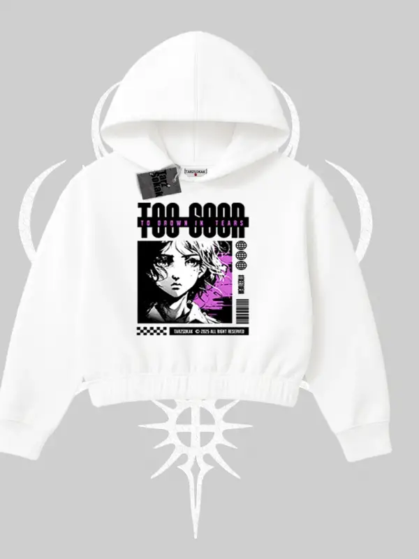Kapşonlu Crop Sweatshirt Anime Devils Girl Japanese Style Baskılı