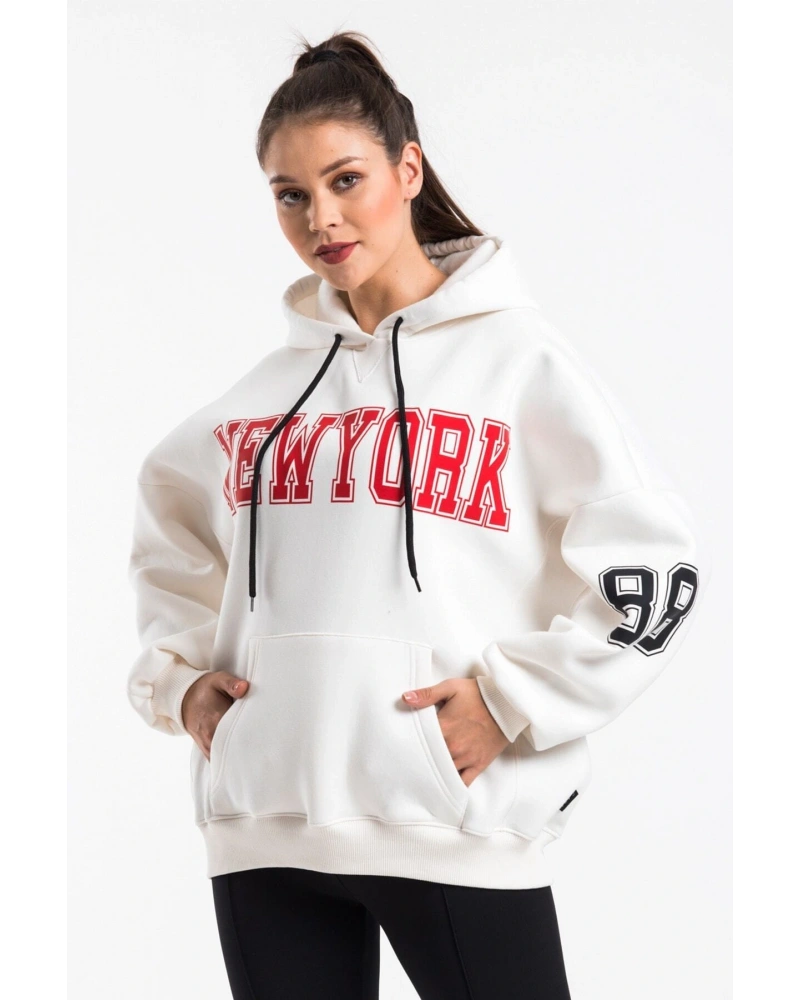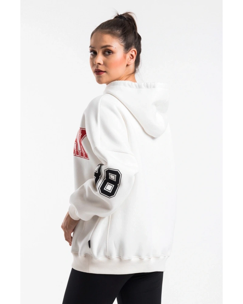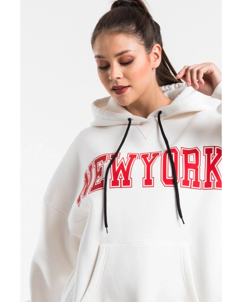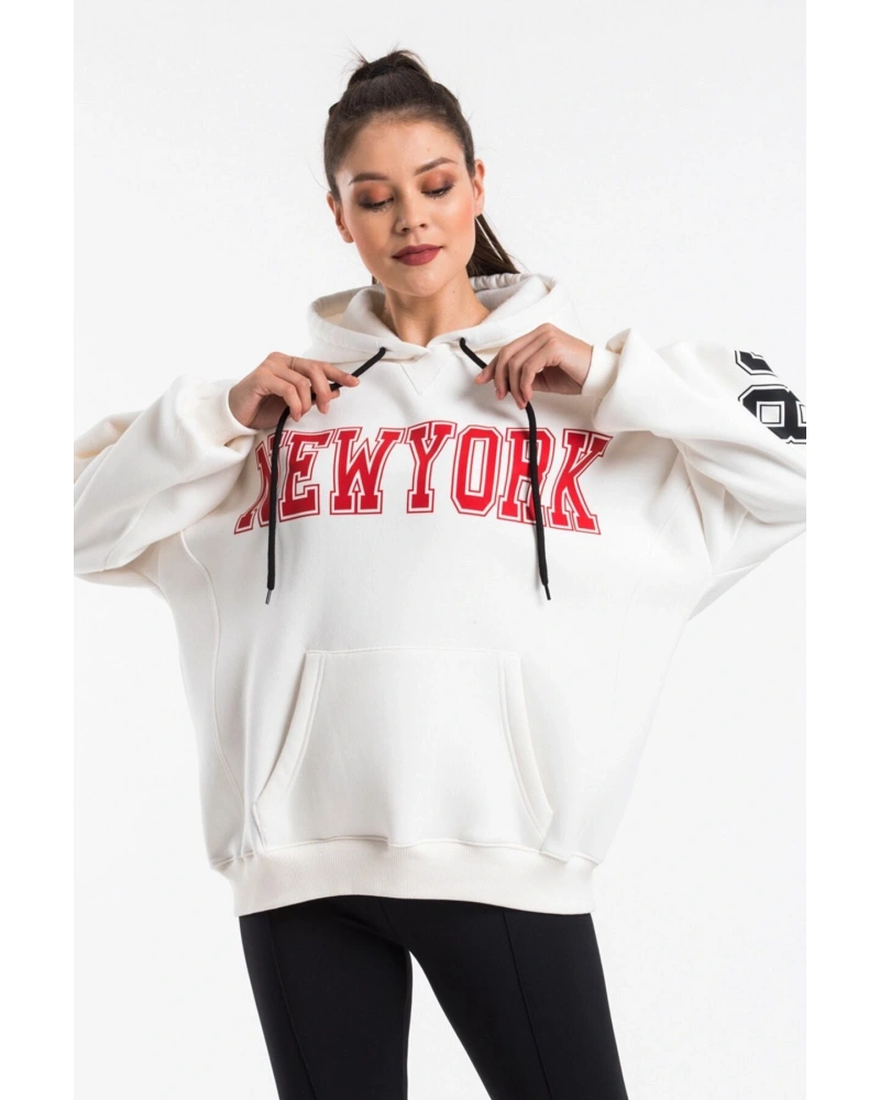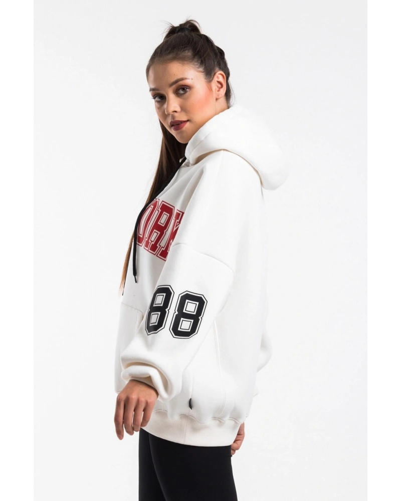 Kadın Ekru Renk Baskı Detaylı Oversize Sweatshirt Cy84191 Beyaz