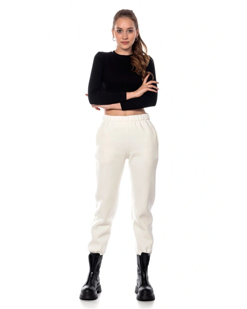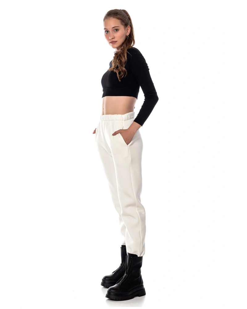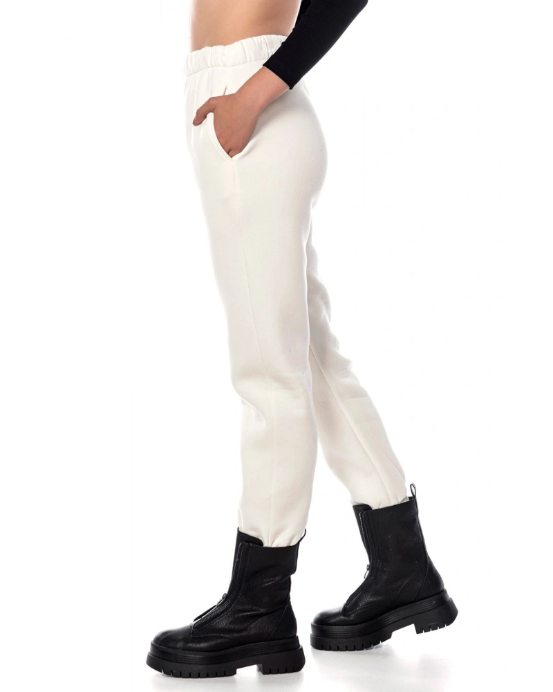 Kadın Ekru Renk Elastik Paça Örme Jogger Eşofman Altı Cy84200