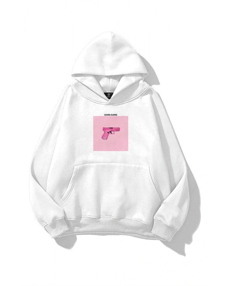 YQYQ----Oversize Pembe Saçlı Kız Ve Tavşan Tasarım Baskılı Unisex Kapüşonlu Sweatshirt Hoodie Beyaz