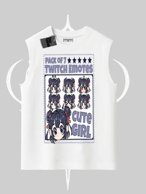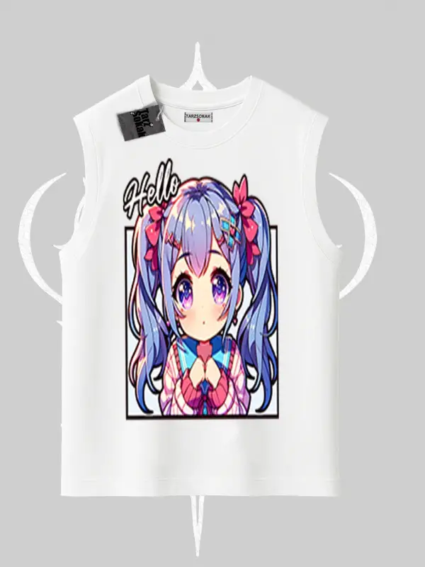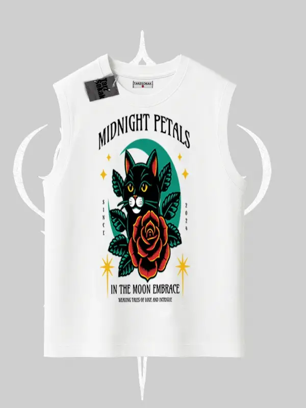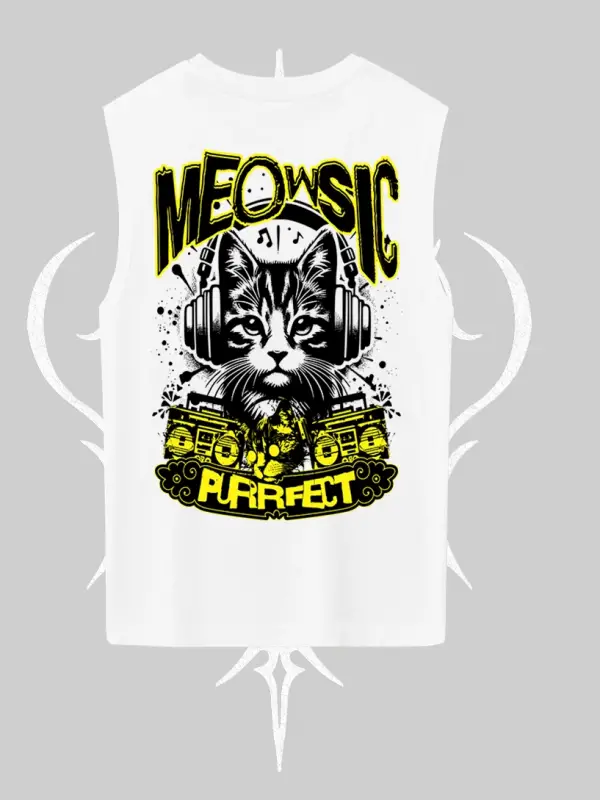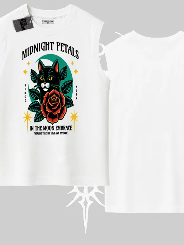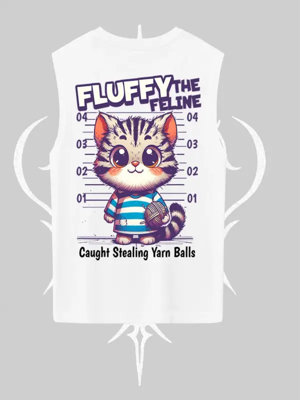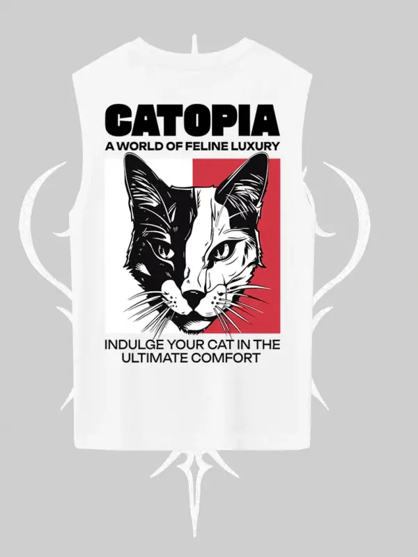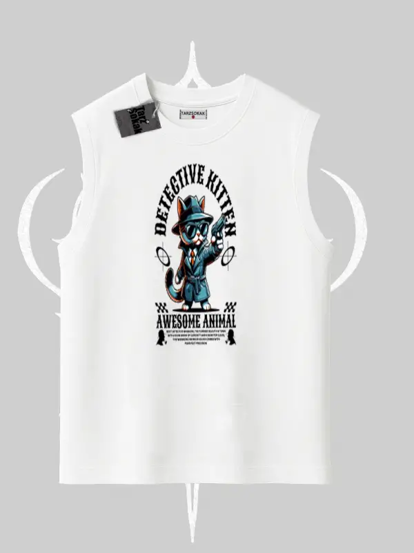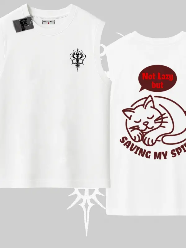 Sevimli Kedi Çizimli Arka Baskılı Kolsuz Tshirt