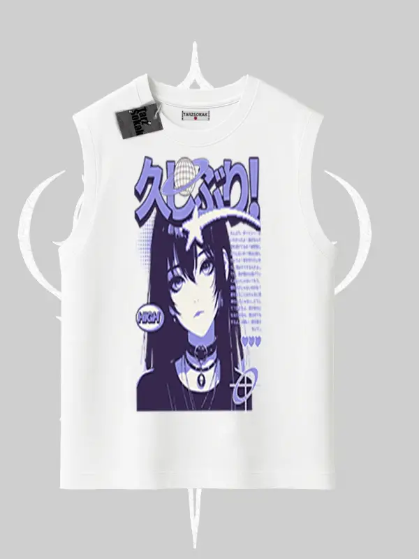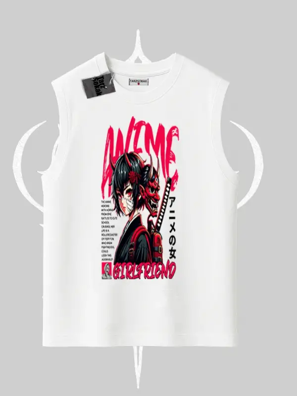 Kolsuz Tshirt Anime Waifu Kırmızı Grafik Desenli