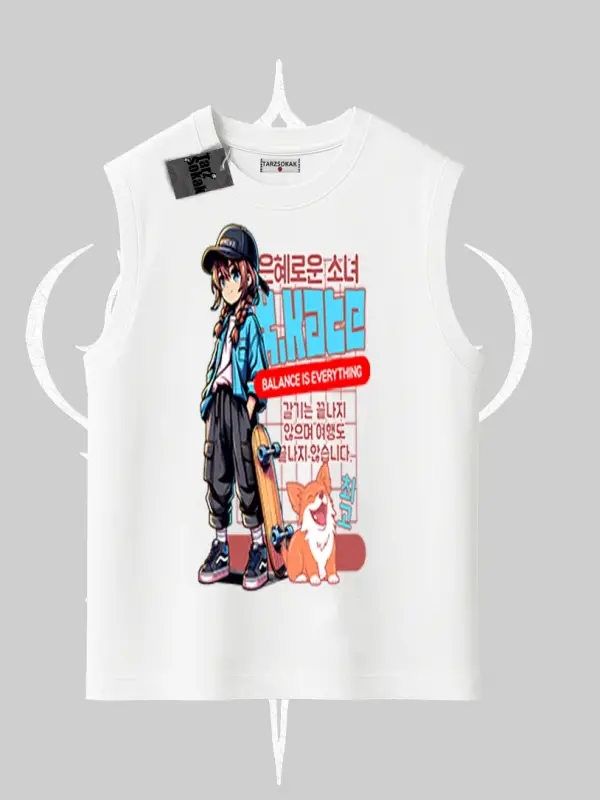 Kolsuz Tshirt Anime Hiker Girl Balance Is Everything Baskılı