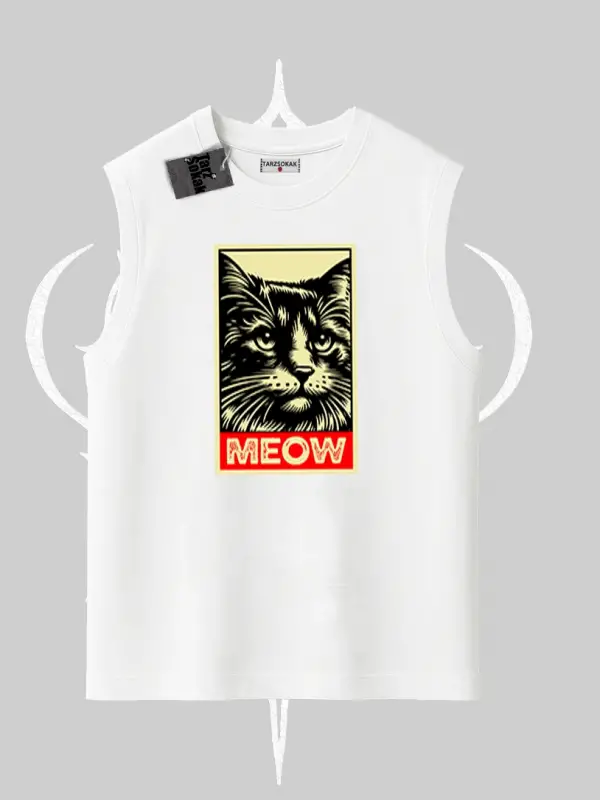 Çerçeveli Kedi Baskılı Kolsuz Tshirt