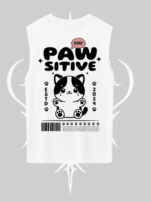 Paw Sitive Kedi Arka Baskılı Kolsuz Tshirt
