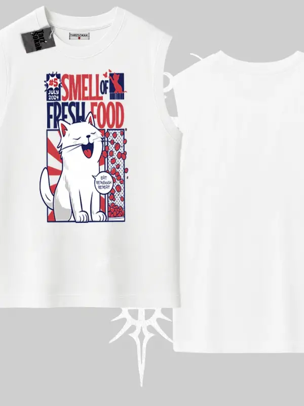 Smell of Fresh Food Kedi Baskılı Kolsuz Tshirt