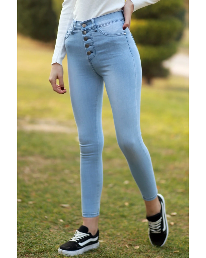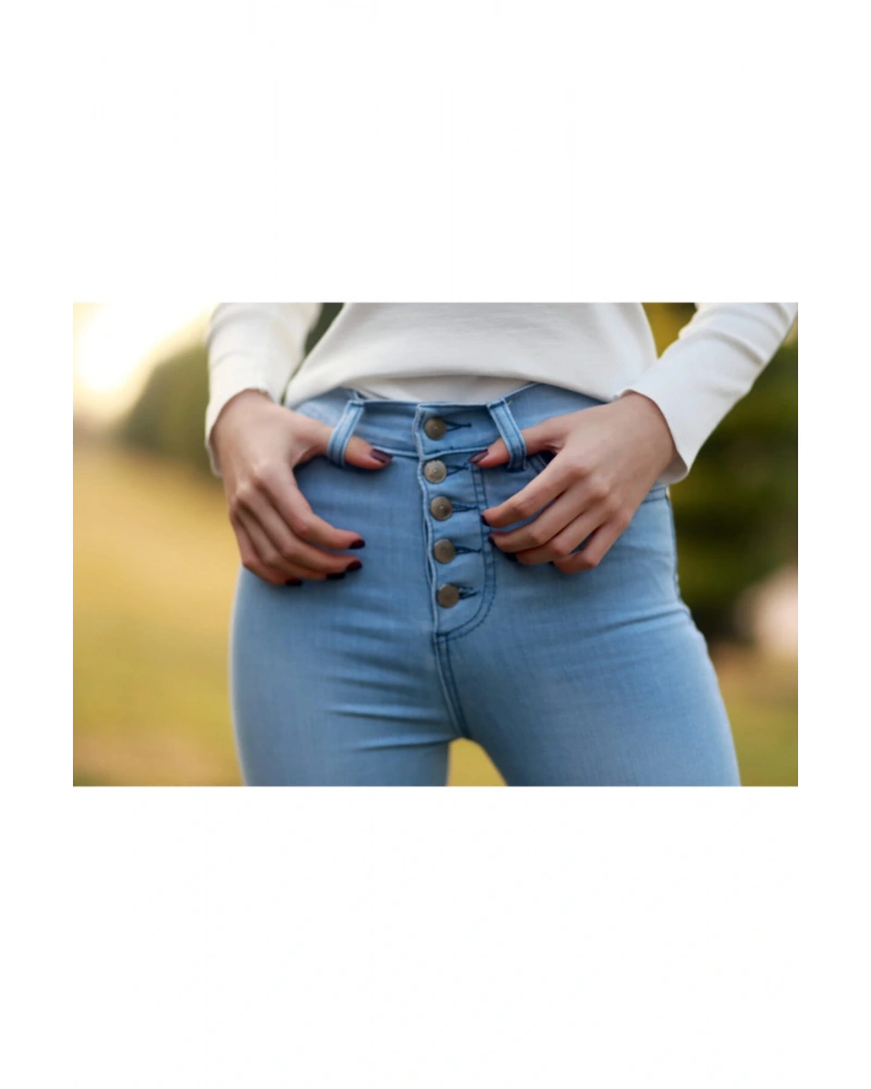 Kadın Mavi Düğmeli Pantolon