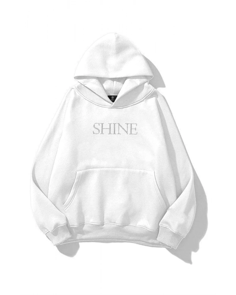 Kadın Shine Taş Baskılı Sweatshirt Beyaz