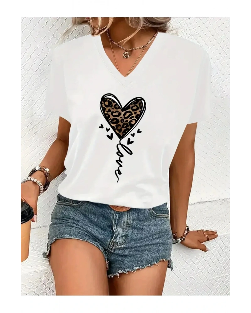 Kadın / Kız V Yaka El/kalp Baskılı Oversize T-shirt Salaş