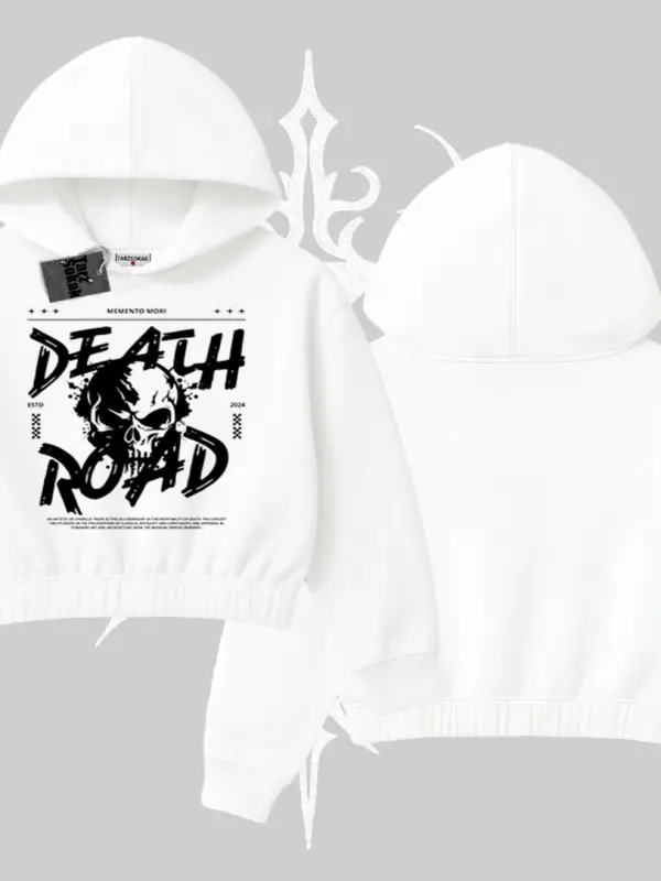 Kapşonlu Crop Sweatshirt Death Road Memento Mori Street Manifest